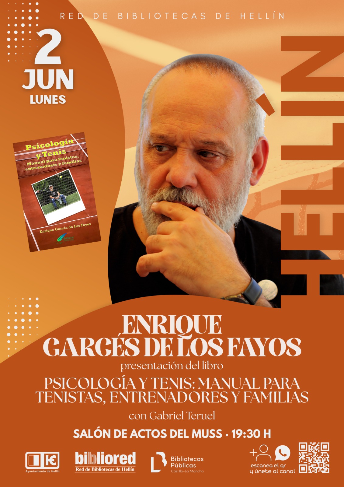 El próximo lunes 2 de junio a las 19:30 h en el Salón de Actos del MUSS, como preludio a las Jornadas Literarias contamos con un evento muy especial: la presentación del libro “Psicología y tenis: manual para tenistas, entrenadores y familias” de Enrique Garcés de Los Fayos, prestigioso psicólogo deportivo.