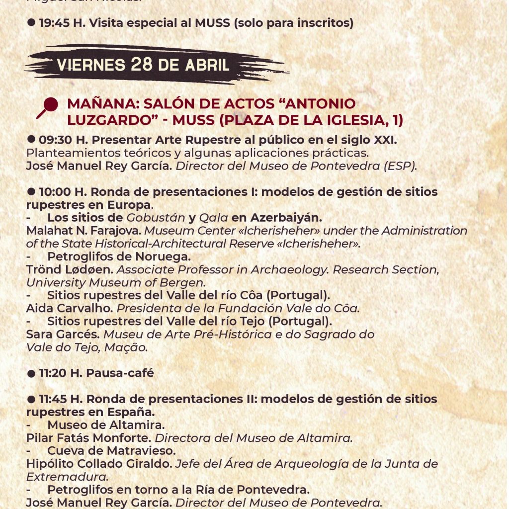 A nivel internacional, participarán, entre otros, la azerbaiyana Malahat N. Farajova, Directora del Centro Museográfico «Icherisheher», Trönd Lødøen, profesor asociado de Arqueología. de la Universidad de Bergen, Noruega, las portuguesas Aida Carvalho, presidenta de la Fundación Vale do Côa. Portugal y Sara Garcés, directora del Museu de Arte Pré-Histórica e do Sagrado do Vale do Tejo.