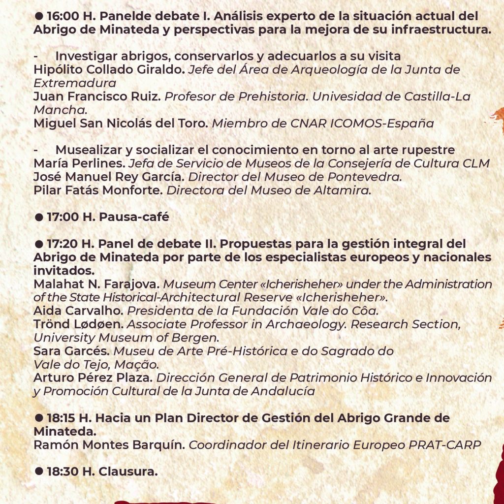Un workshop que se ha querido titular “Repensar Minateda”, y que es una iniciativa en la que se ha invitado a un numeroso panel de expertos en investigación y gestión del patrimonio rupestre para que aporten sus conocimientos e ideas para abordar la futura gestión del Abrigo de la forma más conveniente, cumpliendo todas las normativas, respetando el yacimiento y su entorno, y creando un Plan Director de uso y gestión integral, tanto del abrigo, como de su entorno natural y arqueológico.
