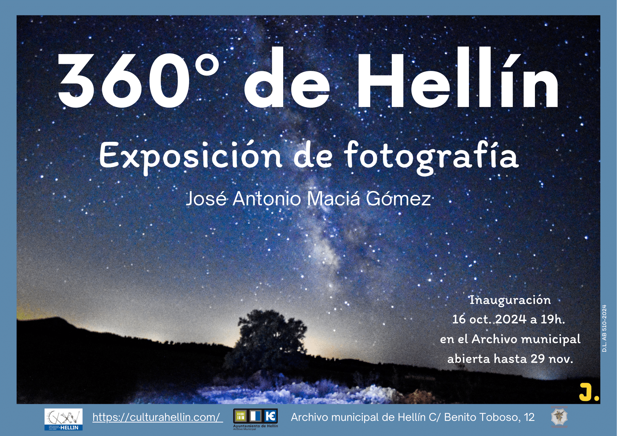 16oct(oct 16)7:00 pm29nov(nov 29)2:00 pm360º de Hellín. Expo de fotografía. José Antonio Maciá GómezInauguración el día 16 de octubre 2024 a 19h.Archivo Municipal de Hellín