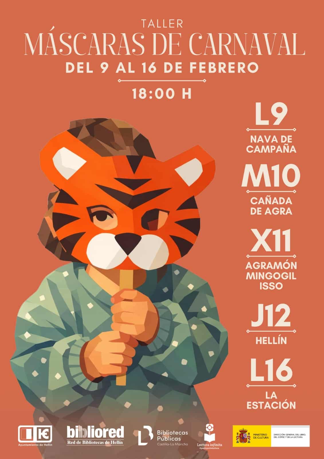 La Red de Bibliotecas de Hellín te invita a participar en los Talleres de Máscaras de Carnaval, una actividad creativa y divertida para peques (y no tan peques 😉).